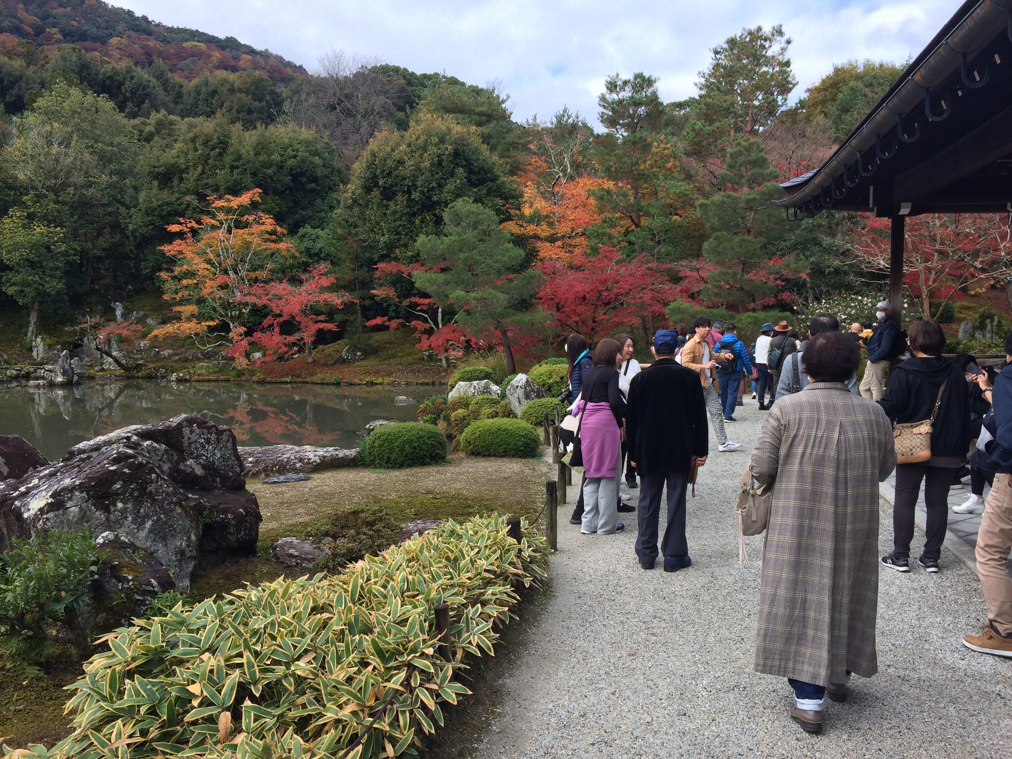 秋の紅葉で有名な東福寺通天橋庭園、指定文化財天龍寺曹源池庭園、竹林の路などを訪れ、